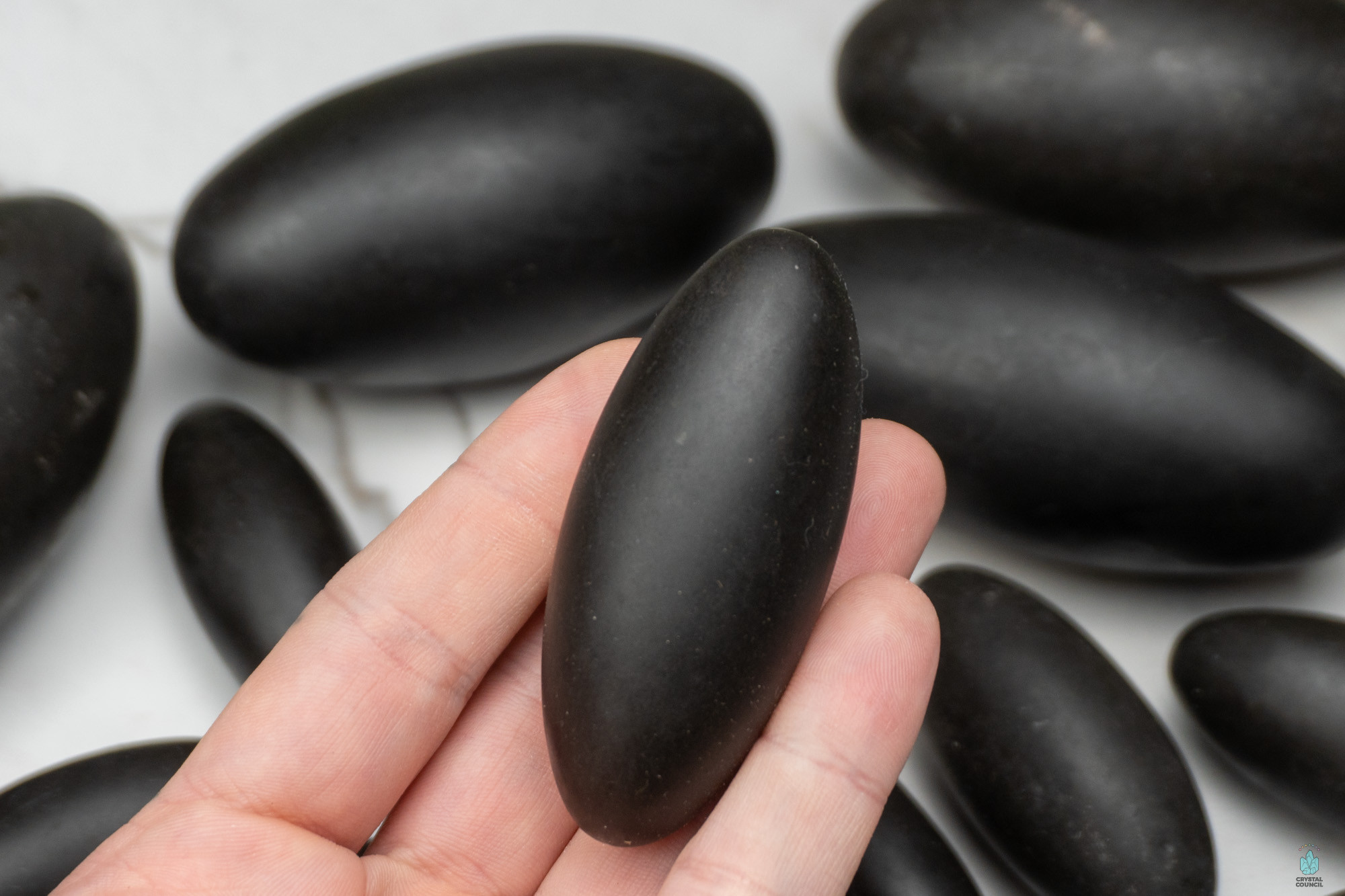 Black Shiva Lingam is a variety of Shiva Lingam, a crypto crystalline member of the Quartz family. It is a rare variety that is sacred to the Indian people, specifically Hinduist, who believe it is a divine object that Lord Shiva carries. The black Shiva Lingam is specifically important and offers different energies and blessings than the brown and white variety. It is believed to be a more powerful aspect of Lord Shiva and his protective energies, as well as more valuable to individual practitioners. Black Shiva Lingams are only sourced from the Narmada river, a sacred river in India and can be collected in a naturally tumbled form that is around 80% of the oval shape in which they are sold. Villagers usually provide a bit more polishing to get it into the perfect lingam shape, but have had to do additional work since a dam was built that reduces the speed of the water, causing less friction on the stones.