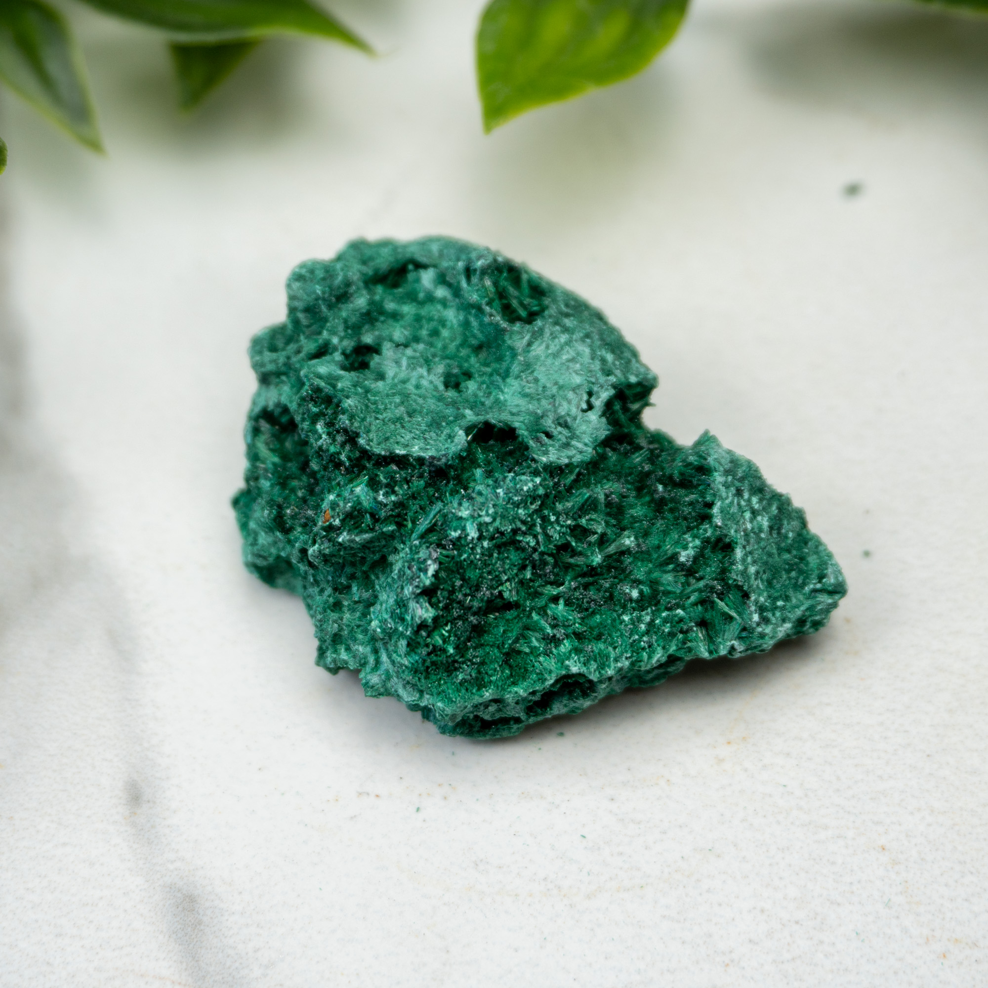 High quality fiberous Malachite from the Congo! Malachite is one of the most important minerals for protecting against negative energies. It fills our auric fields with positivity, while simultaneously pushing all the negativity outwards. Malachite is known to create a “cloak of invisibility” around the user. This will remove you from certain confrontations and make you less susceptible to negative energies. This stone also helps with emotional balance, especially during times when people around you put their “baggage” on you. Malachite offers the willpower to confront and get past any emotional and physical blockage happening in your current life. Lastly, it helps people who lack self-confidence and self-responsibility. This powerful mineral assists in making progress on your spiritual journey and is a must-have for anyone who is constantly working on themselves. Malachite opens the heart and will allow for balance on all levels.