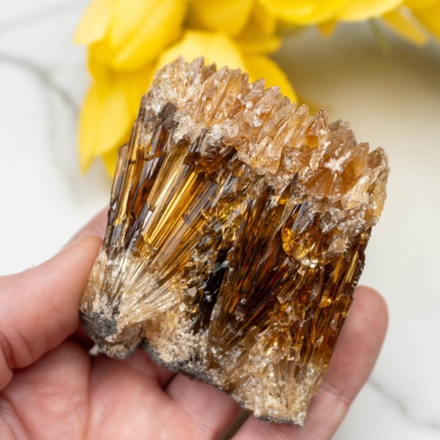 This mineral resonates with the Root, Solar, and Third-Eye chakras creating a powerful trifecta of personal-will and creation. The golden warmth of this crystal is felt upon first touch, providing the user with a link to Mother Earth’s energies. This strong connection is excellent for accomplishing high-effort tasks and projects. When our personal-will is rooted, we are more inclined to push ourselves to the finish line. The hardest part of doing something is getting started, and Amber Calcite encourages us to get up and get going.