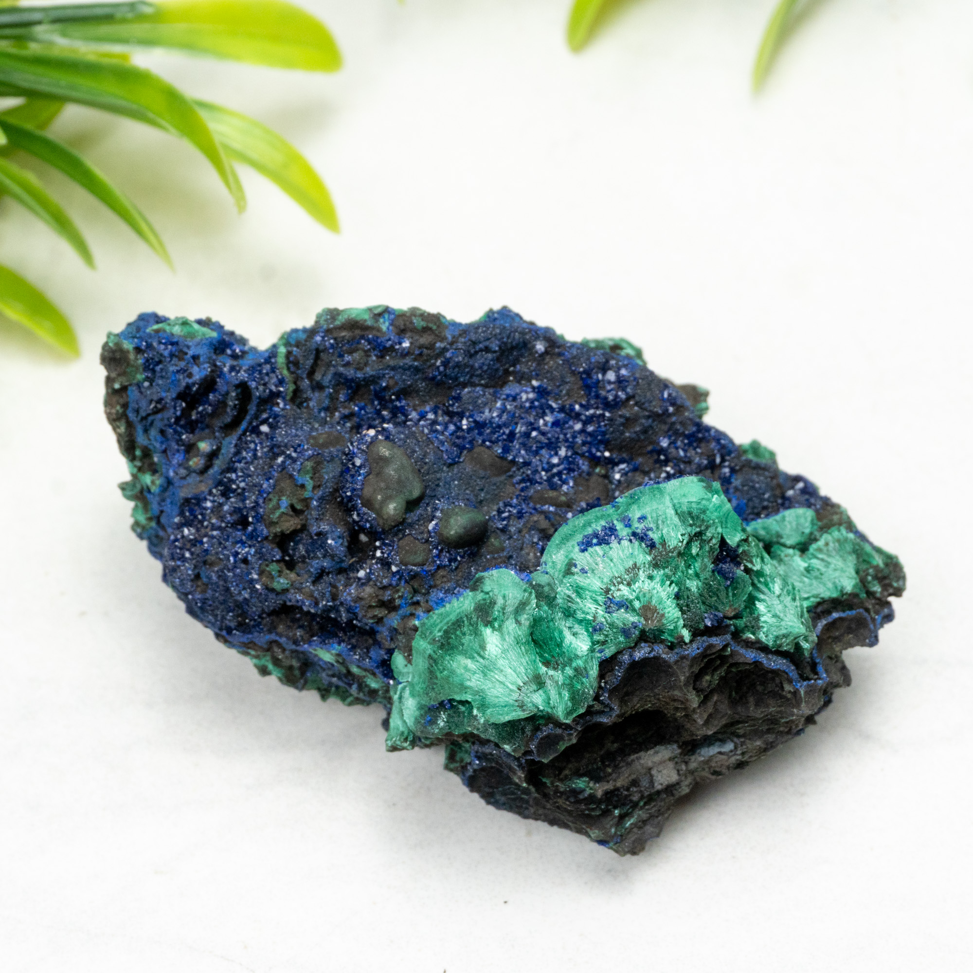 Glistening with vibrant tones of azure and forest green, this Azurite on Malachite piece from China is a captivating sight. As a powerful conductor of energy, Azurite enhances intuitive abilities and brings clarity to the mind, while Malachite amplifies positive transformation and guards against negativity. Together, they create a conduit for wisdom and understanding, making this piece an essential addition to any crystal collection.