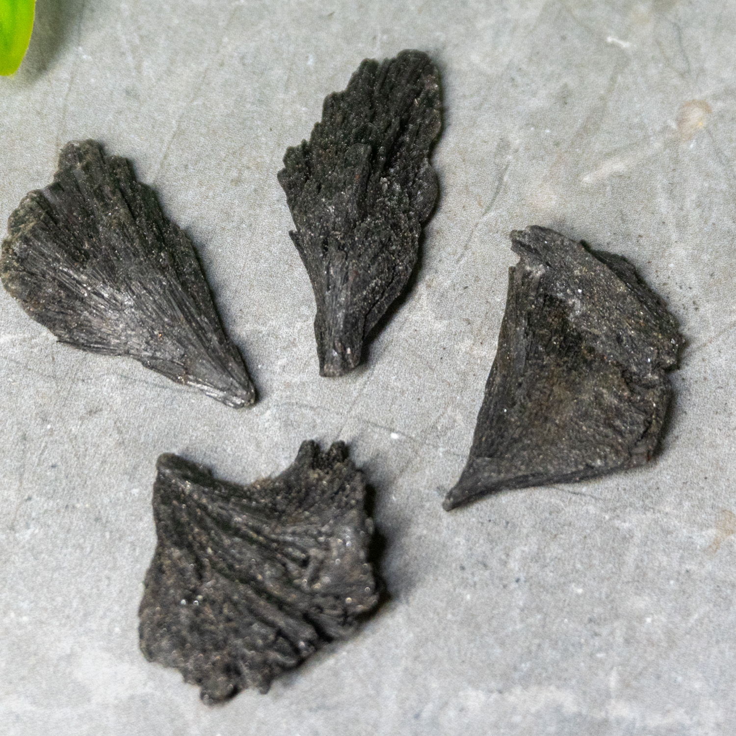 Includes 4-5 small black kyanite fans in a satchel! Black Kyanite is an excellent stone for protection and grounding.