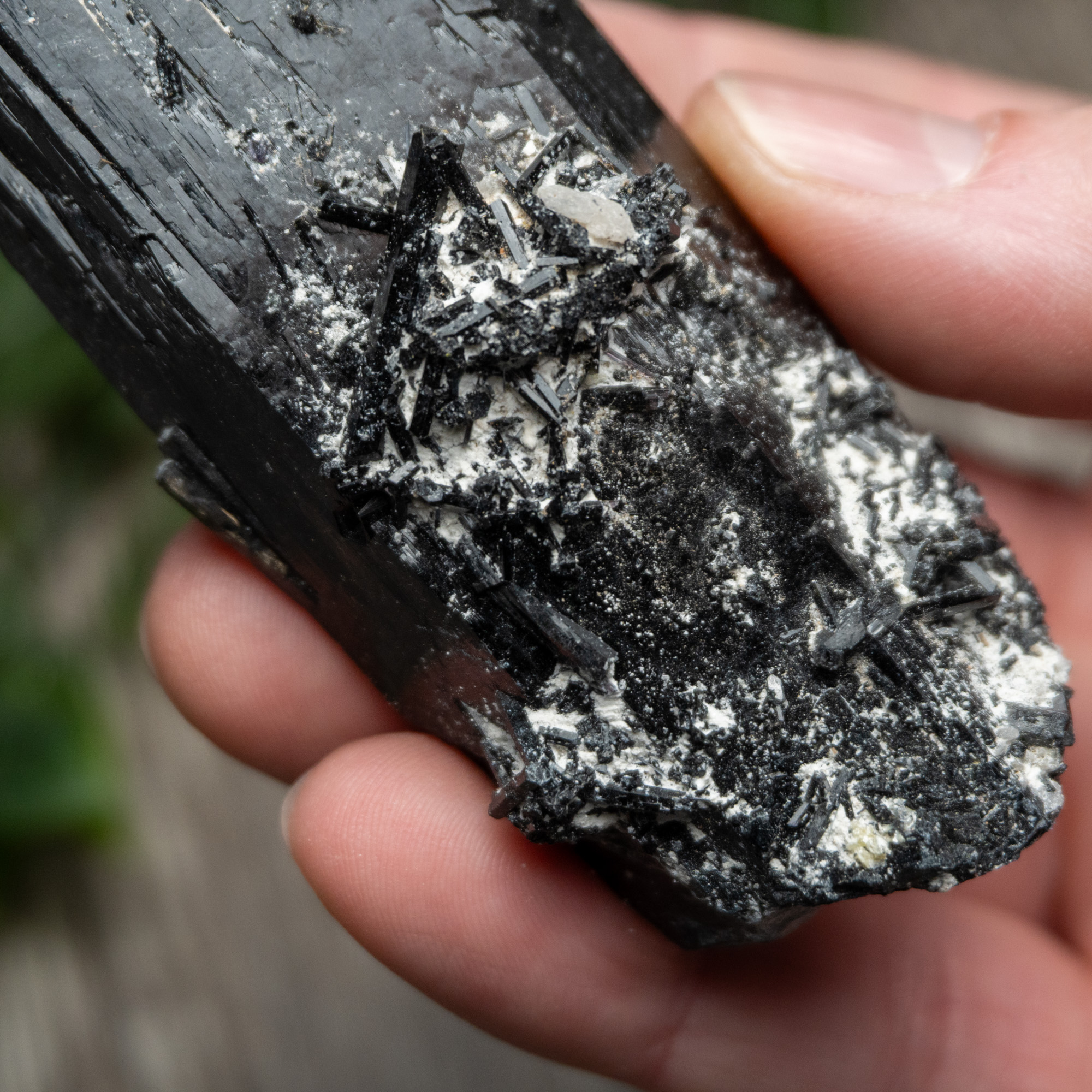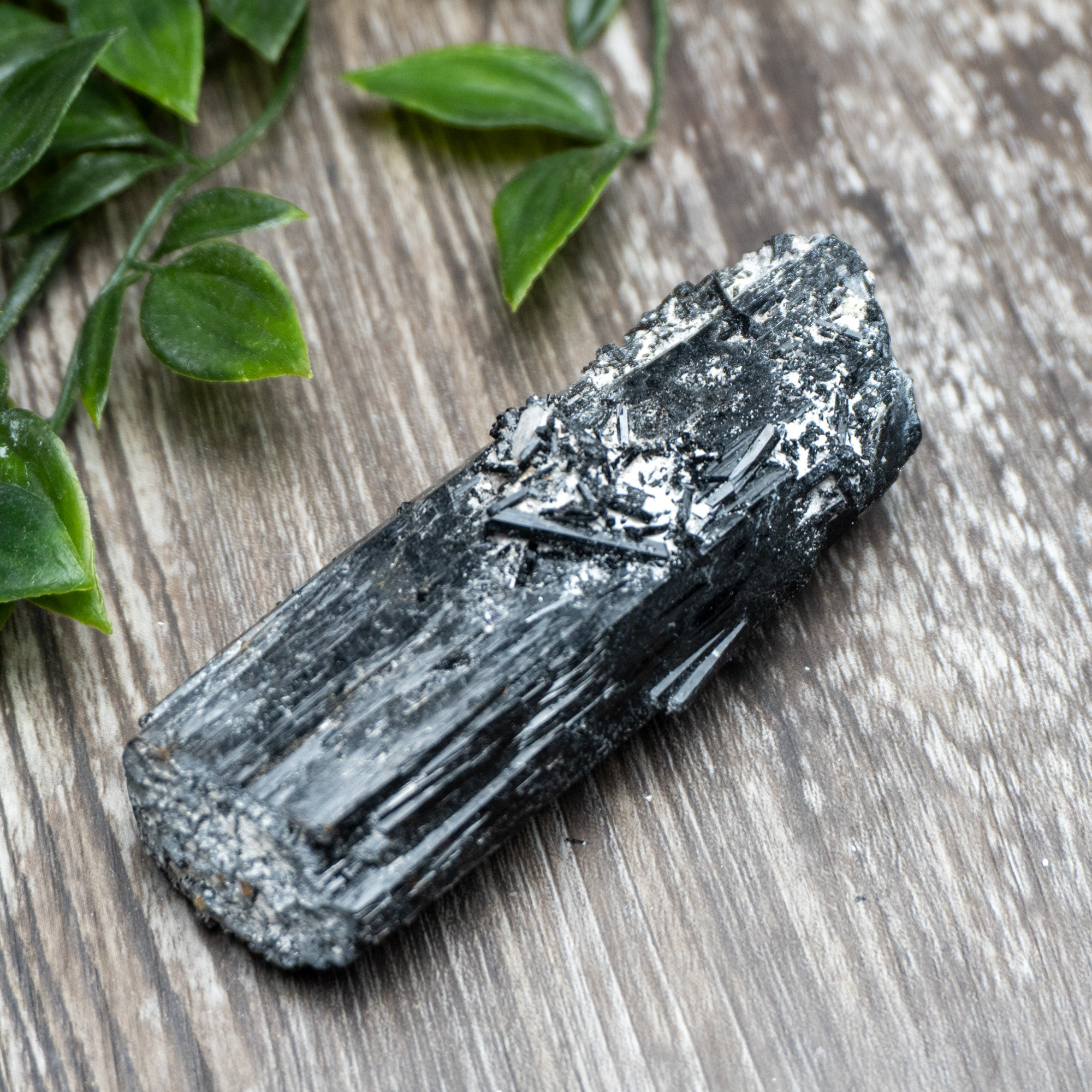 Namibian Black Tourmaline often forms in thin, needle like structures that create a dense, protective lattice of energy. This natural growth habit supports strong grounding and energetic shielding, helping to block unwanted influences from your environment. It encourages emotional stability and mental clarity, especially during periods of stress or overwhelm. Working with it reinforces personal boundaries and promotes a calm, steady sense of security.