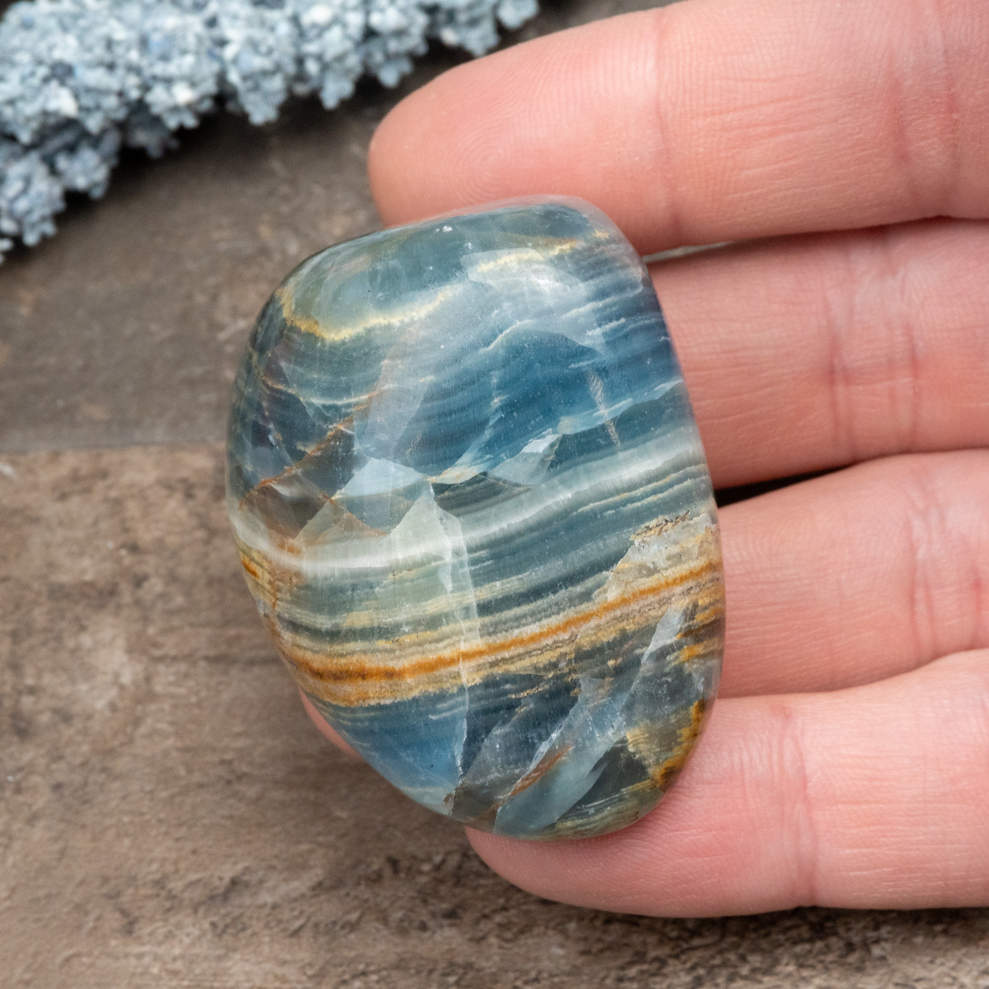 Blue Onyx is a stone of the throat chakra that opens your communicative skills to not only yourself but also the world around you. It is much easier for you to talk about your heartfelt emotions when you are at peace with yourself, and working with Blue Onyx will help you achieve that. This mineral is a member of the Quartz family and its energies are naturally enhanced and can be often felt to the touch. Try placing a piece directly over your throat chakra during or after your meditation, or even carrying a piece with you throughout your day! You may initially notice a sense of overall softening of your attitude and reactions to others. This inner reflection teaches you that you are only able to treat others how you treat yourself.