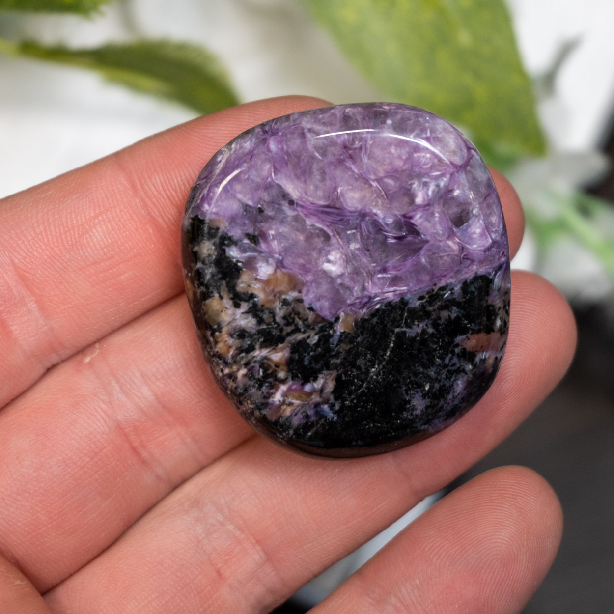 Charoite is a multidimensional stone that assists one in connecting with spirit guides, deities, and entities of other realms. Our third eye, crown, and etheric chakra system is truly stretched to its limits when working with this stone (especially when placed directly on the forehead). The energies released from within Charoite instantly activate the pineal gland and allows for a hasty development of transdimensional vision.