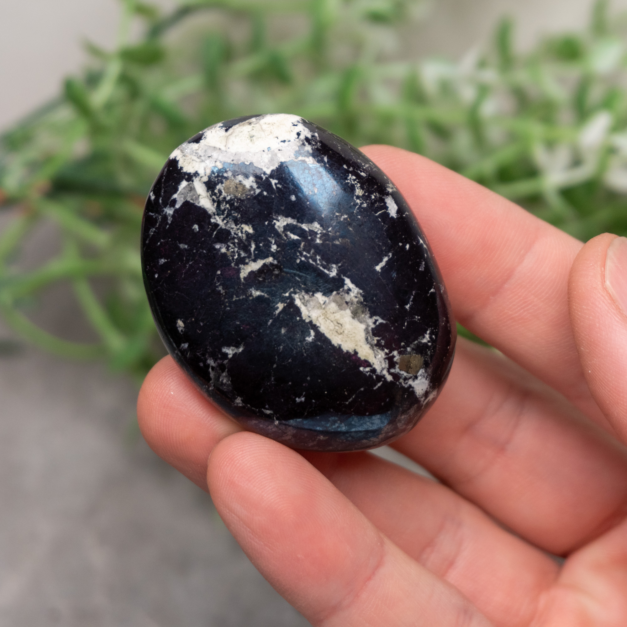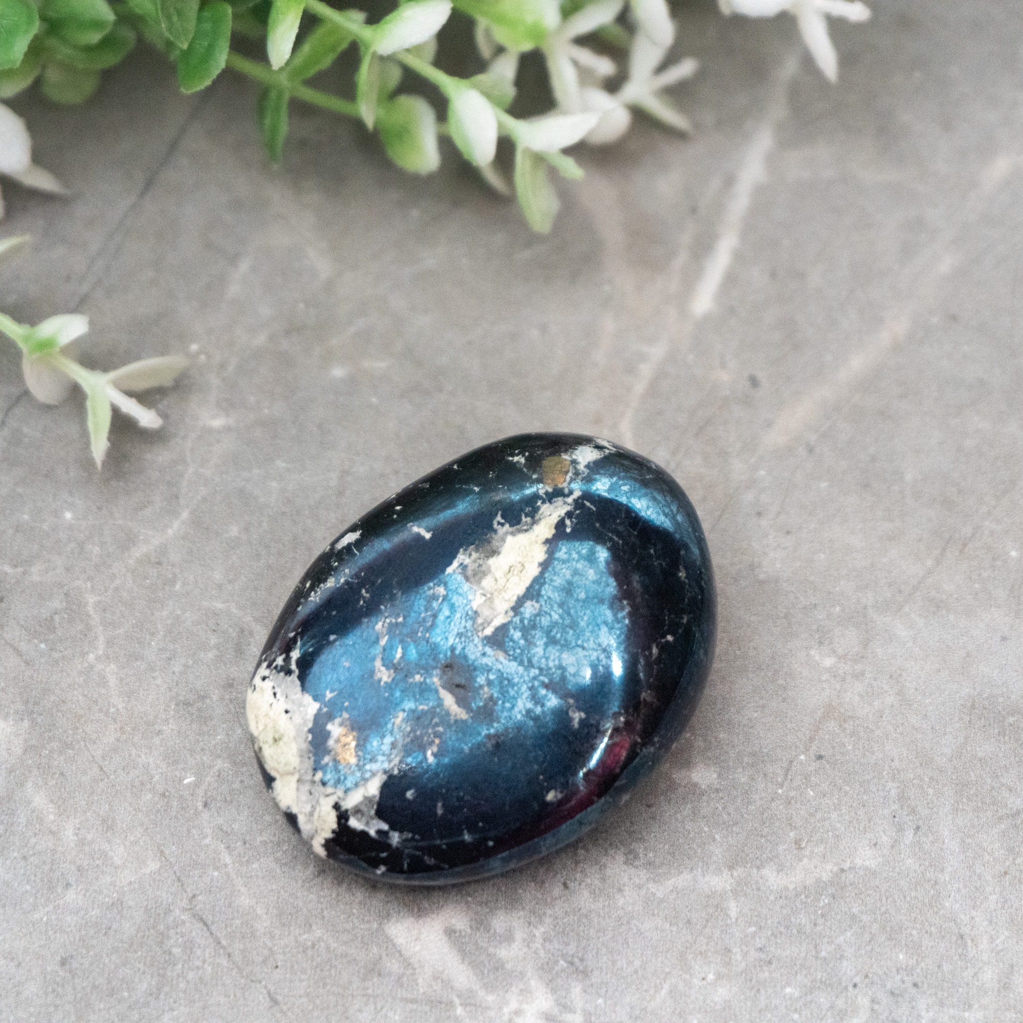 Covellite is a very powerful stone that helps one bridge the physical and ethereal realms together. Our minds become open and clear when working with Covellite, helping one attune to the powerful energies these higher dimensions contain. One will notice their own unique psychic abilities slowly becoming awakened within them. Very lucid dreams are a common sign of being able to understand and handle this higher knowledge being channeled through us. This information can be messages from spirit guides or guardian angels, foreshadowing upcoming events, or a sign to make a change in your life. Covellite helps you ground these energies down to Earth and use them along your life path.