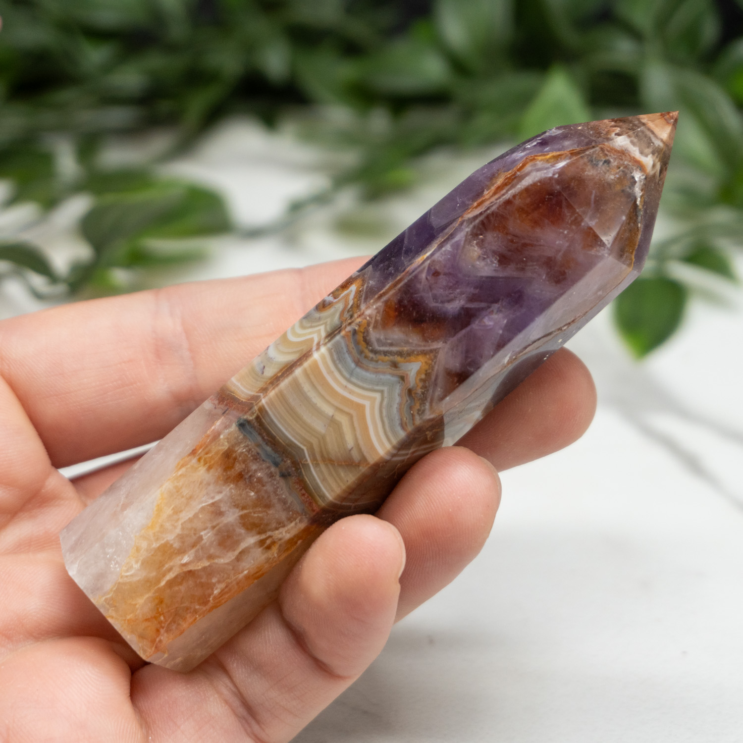 Crazy Lace Amethyst is a rare and colorful fusion of Crazy Lace Agate and Amethyst, combining the lively banding of agate with the deep, spiritual hues of purple quartz. The agate portion brings grounding, protection, and joyful energy, while the amethyst contributes calm, clarity, and higher spiritual awareness. Together, they create a stone that balances lightheartedness with wisdom, helping you release tension while staying aligned with your higher self. Crazy Lace Amethyst encourages both emotional healing and creative expression, making it a supportive companion for those seeking balance between playfulness and spiritual growth.
