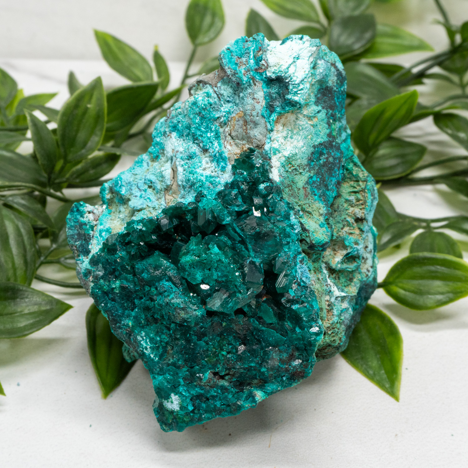 Dioptase is a vibrant talisman of the heart that can help one relinquish extremely sensitive emotions such as grief, trauma, depression, anxiety, and self-hate. This special mineral exposes one’s heart and brings about soothing waves of life force energy that helps “reset” one’s emotional body. Each day this stone will pull out more strength from one’s body that may have gone dormant. This strength will eventually become so overwhelming that it will naturally raise one’s self confidence and courage levels, forcing you to take action and make a change. This change can be something as small as removing a bad habit from your lifestyle or taking on a new activity that will help you grow on the path you ever so desire.