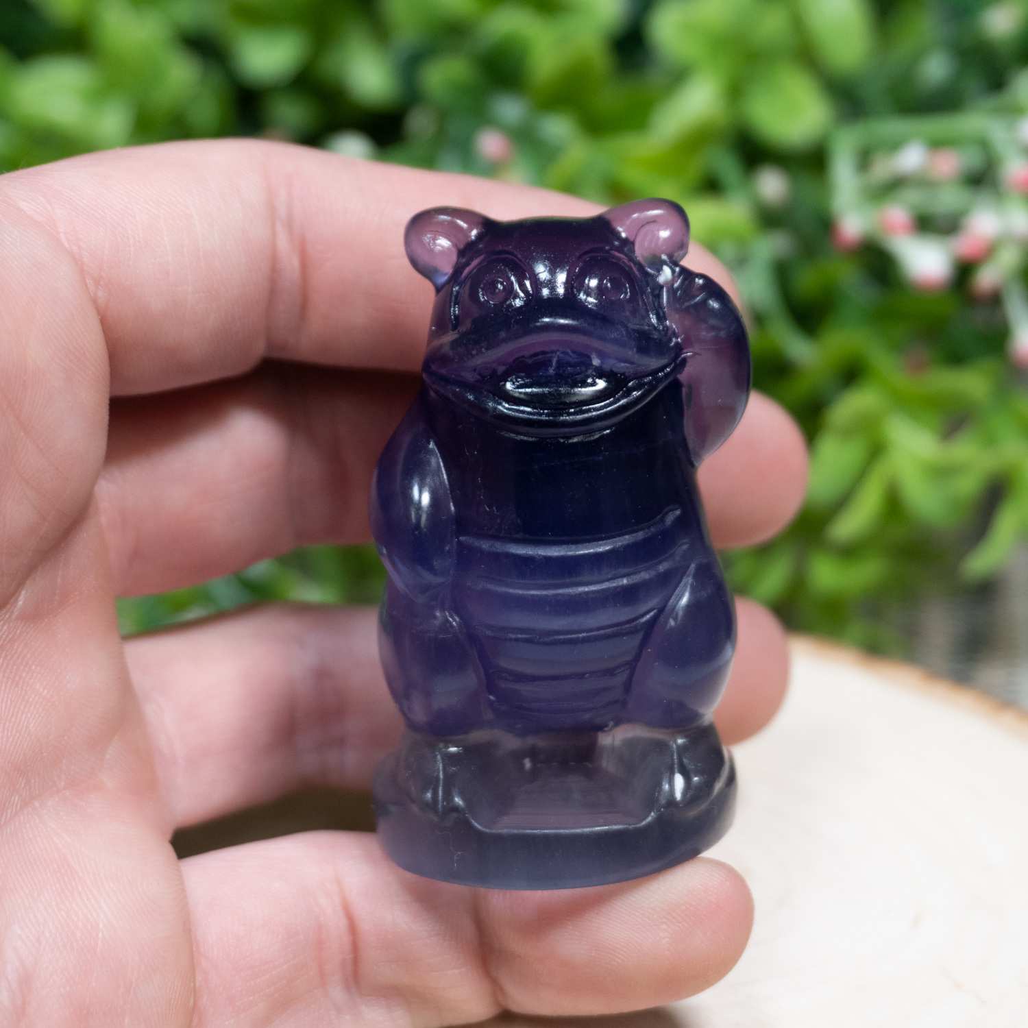 Slowpoke look-alike hand-carved figurine! Fluorite is a stone known for clarity and mental enhancement. Its ability to assist the clearing of negative energy and aiding in decision-making has made this a favorable stone to work with. This powerful crystal is known as an absorber of negative energy, specifically within one’s aura and mind.