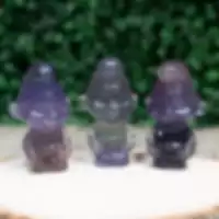 Iconic Smurf-like hand-carved figures of Fluorite! Fluorite is a stone known for clarity and mental enhancement. Its ability to assist the clearing of negative energy and aiding in decision-making has made this a favorable stone to work with. This powerful crystal is known as an absorber of negative energy, specifically within one’s aura and mind.