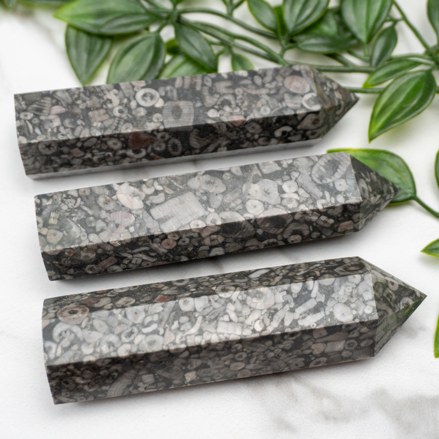 Radiating with earthy tones, the Fossil Shell Jasper Tower Random showcases a magnificent blend of deep browns, subtle tans, and vibrant whites in an eye-catching, tower-like formation. As a grounding stone, it anchors its user securely to the physical world while creating a stable environment for concentration and mental clarity. With its inherent ability to balance energies, this piece not only fosters emotional equilibrium but also invokes a sense of calm amidst life’s storms.