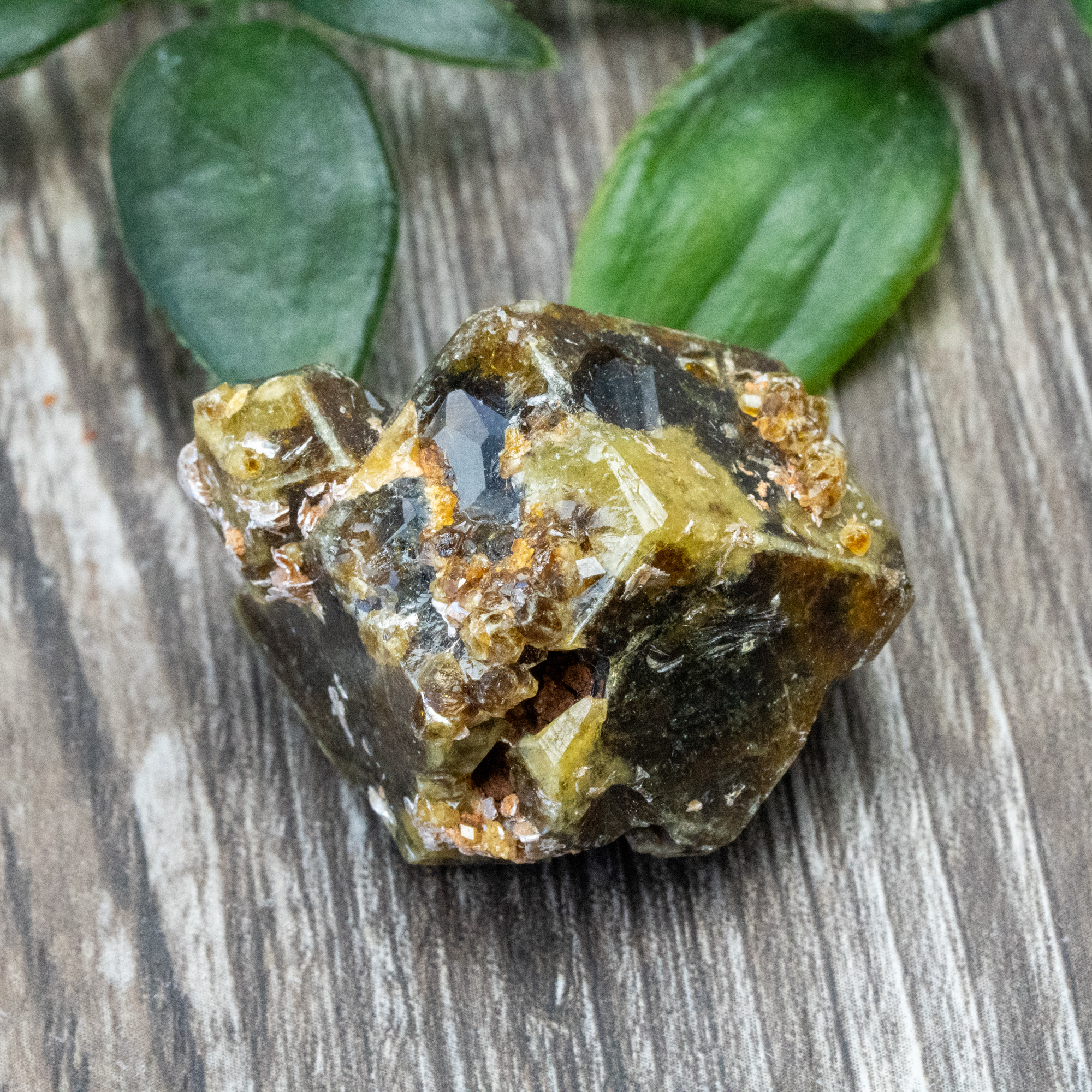 High quality green garnet with mini druzy garnets growing on the piece! A few chemical impurities within it are the only differences between Green and Red Garnet’s physical structure. These colors share the same properties and project very similar energies. One minor difference is the connection that Green Garnet has with your heart space. This stone helps one open themselves up to the world around them and better connect them to the ones they love. Happiness and joy may soon follow, with one turning their attention to their truest desires. Achieving those emotions will become a priority, as you will soon realize the importance of self-accomplishments. Garnet’s natural manifesting and grounding ability make this a true power stone. One that is here to push you to take control of your life path and spiritual evolution.