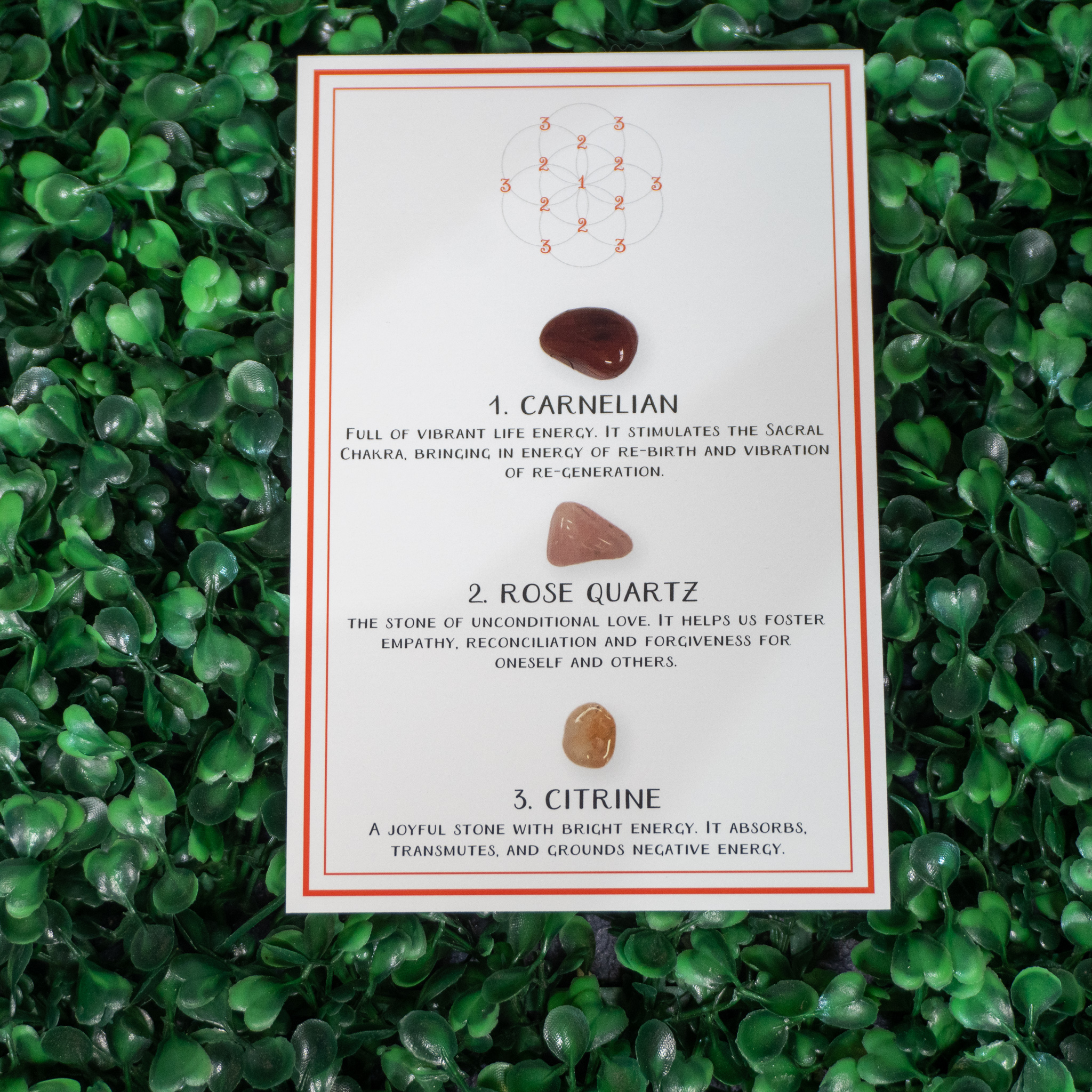 Grid card for creating a healing energy grid. This card recommends the stones and placement for optimal energy flow.