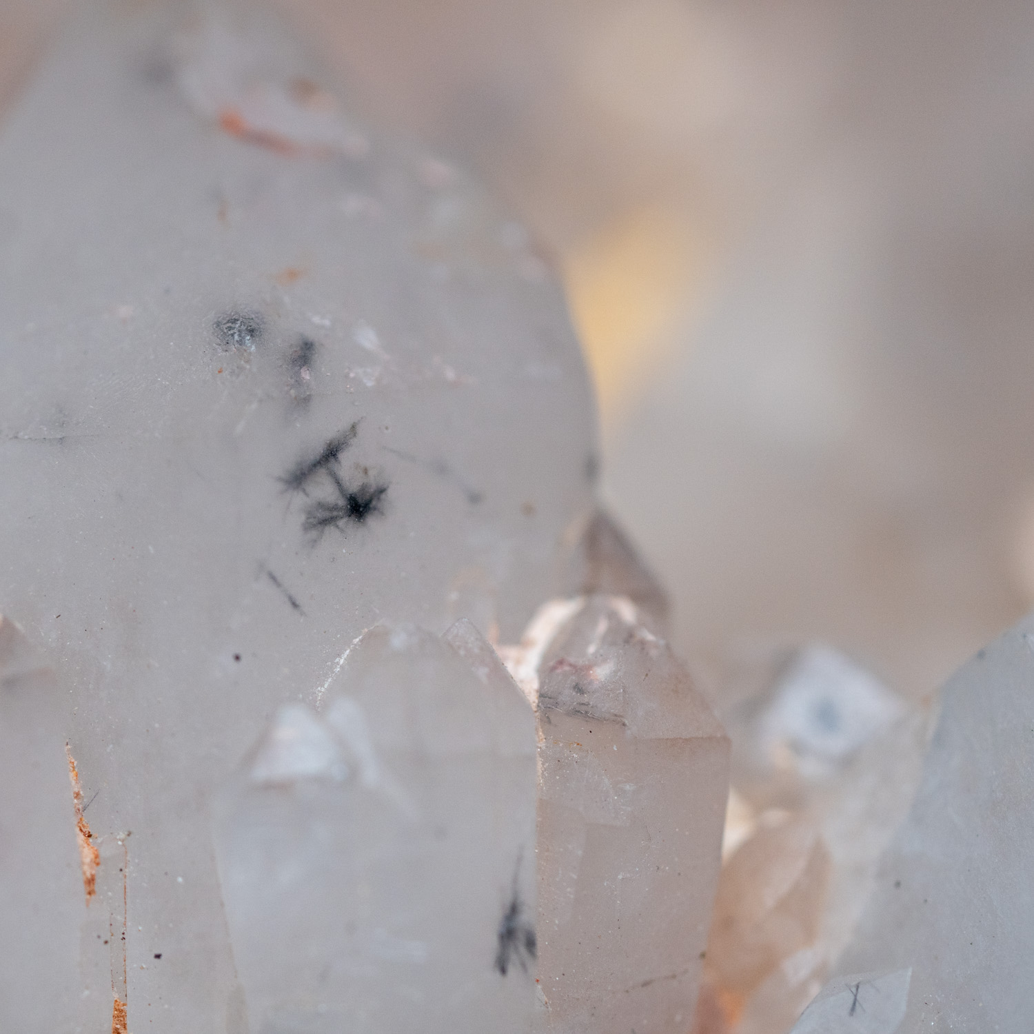 This striking specimen features Hollandite inclusions suspended within clear to milky Quartz points, creating a unique and captivating contrast. The delicate, star-like black formations of Hollandite naturally form within the Quartz during its growth, giving each piece a one-of-a-kind appearance. Known for amplifying grounding energy and enhancing spiritual insight, this crystal is both visually stunning and energetically powerful. Perfect for collectors, healers, or those drawn to rare and high-vibration stones.