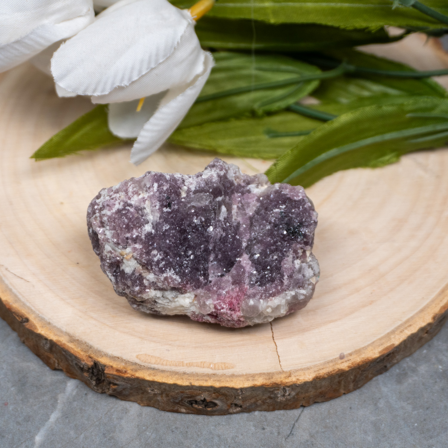 A beautiful combination of Lepidolite with Pink Tourmaline in Quartz. Lepidolite has softening energies that can affect your emotional body and keep your mental state operating in a calm manner.