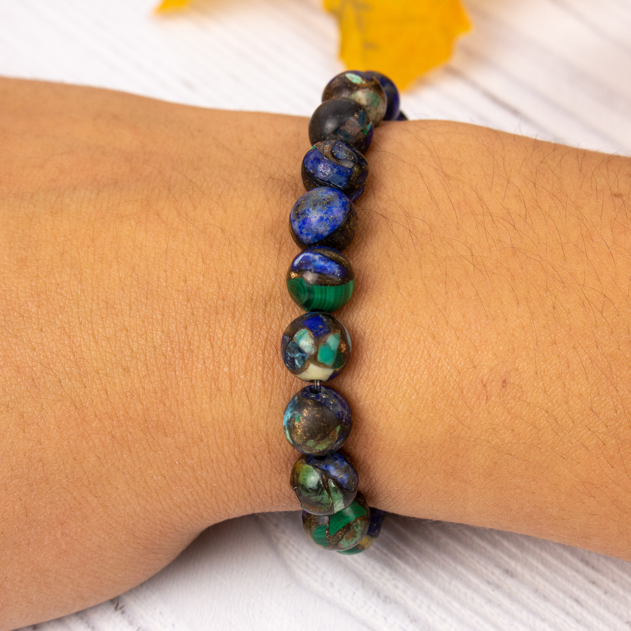 A powerful combo that we’ve never seen in bead form. Malachite and Azurite together help strengthen the connection between our emotional body and mind.