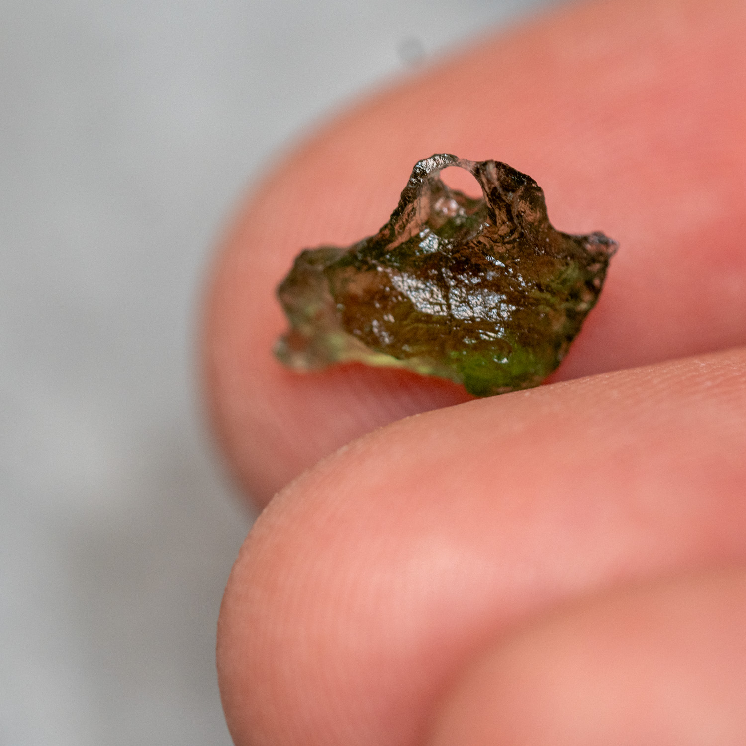 Moldavite is a crystal that radiates energy, and upon first touch, you can feel the warmth it gives off. This warmth is so common that it has developed the term “Moldavite flush”. The “flush” sends vibrations through the body and will imbue the user in a light tingly sensation. Some new users say it is a little over-whelming and will take it off or out of there pocket periodically as they feel “lightheaded”. Its usually recommended to always have a grounding stone nearby when you first start working with it to help avoid Moldavite being too strong. Over time, the strength will be less overwhelming as you get used to the stone.