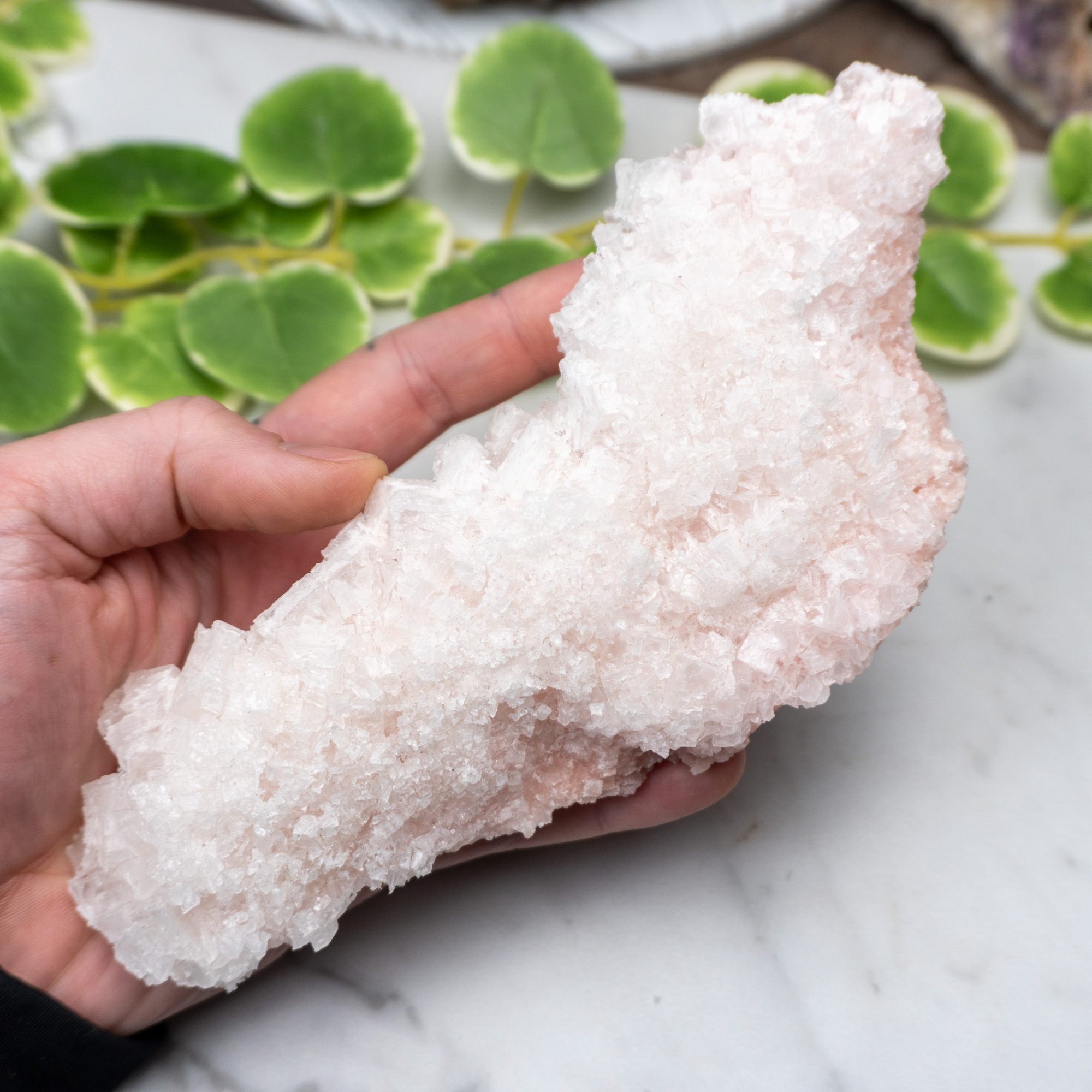 Pink Halite is a stone that pushes one to love every ounce of themselves and who they truly are. It’s a strong stone that helps one release emotional strain weighing down on them daily. Such feelings as self guilt, low self-esteem, and overwhelming anxiety are perfect symptoms of someone who should carry a piece daily. Pink Halite urges one to open their heart and allow all emotional strain to surface so that it may be dealt with.