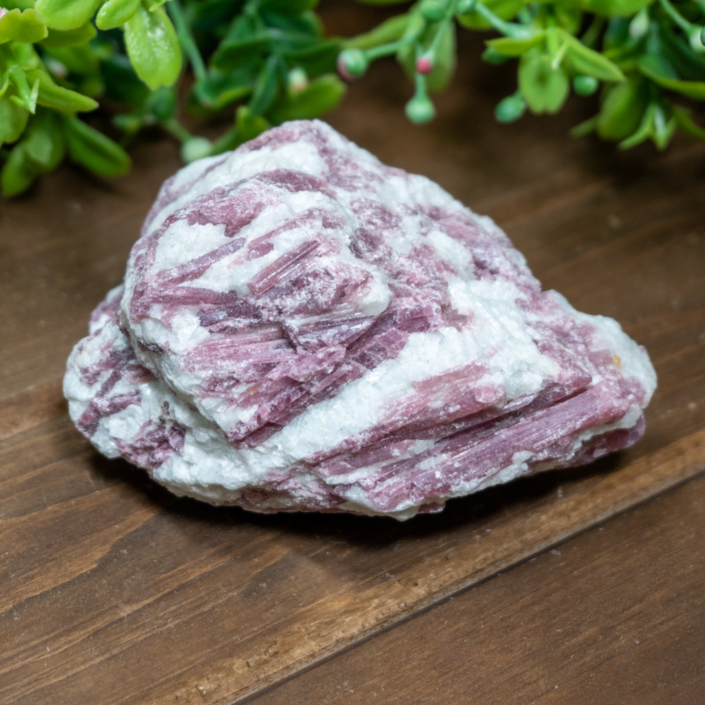Beautiful Pink Tourmaline in Quartz. Pink Tourmaline is a stone of love, compassion, emotional healing and self love. It helps calm ones emotions in times of distress, and is the perfect stone to carry if you suffer from daily bouts of anxiety.