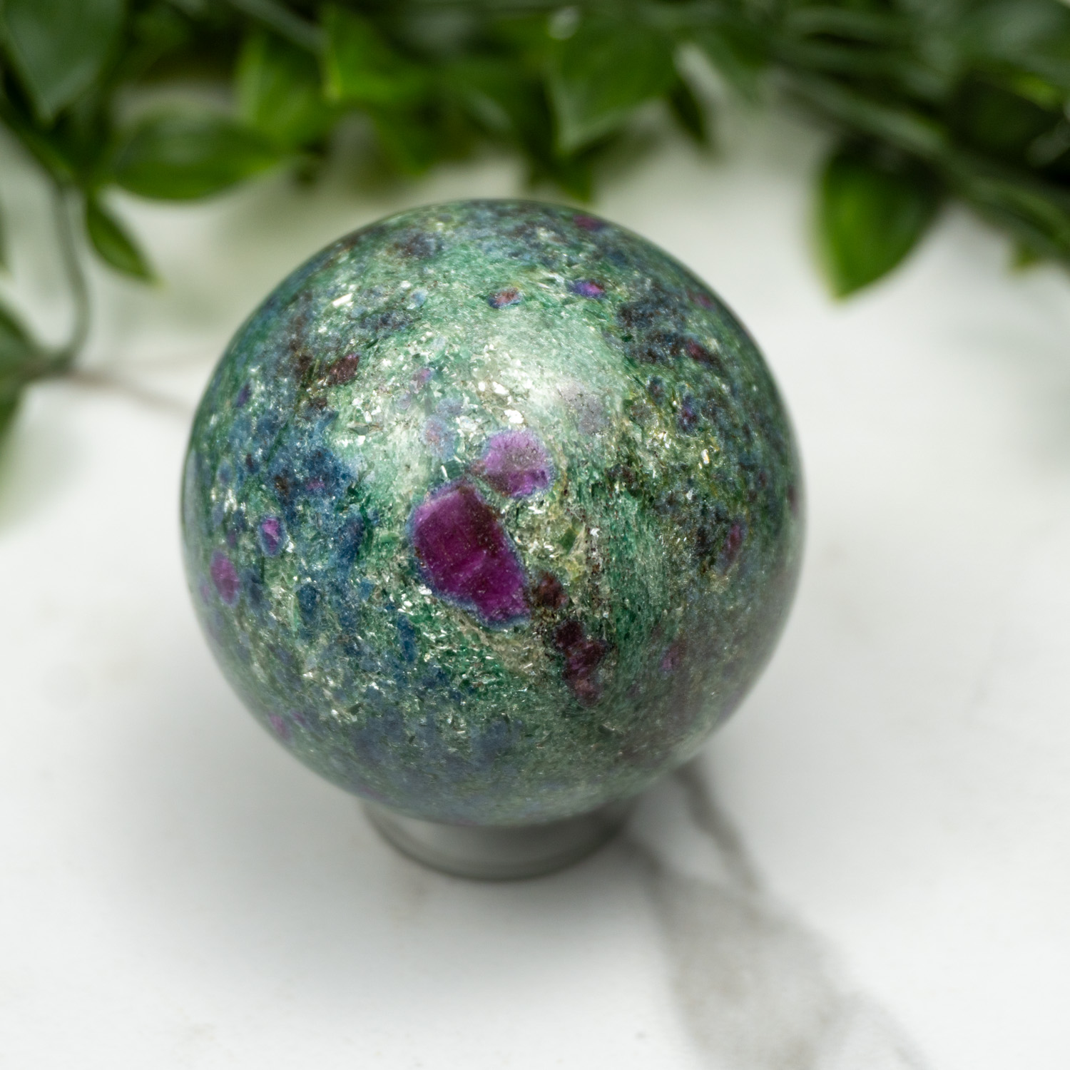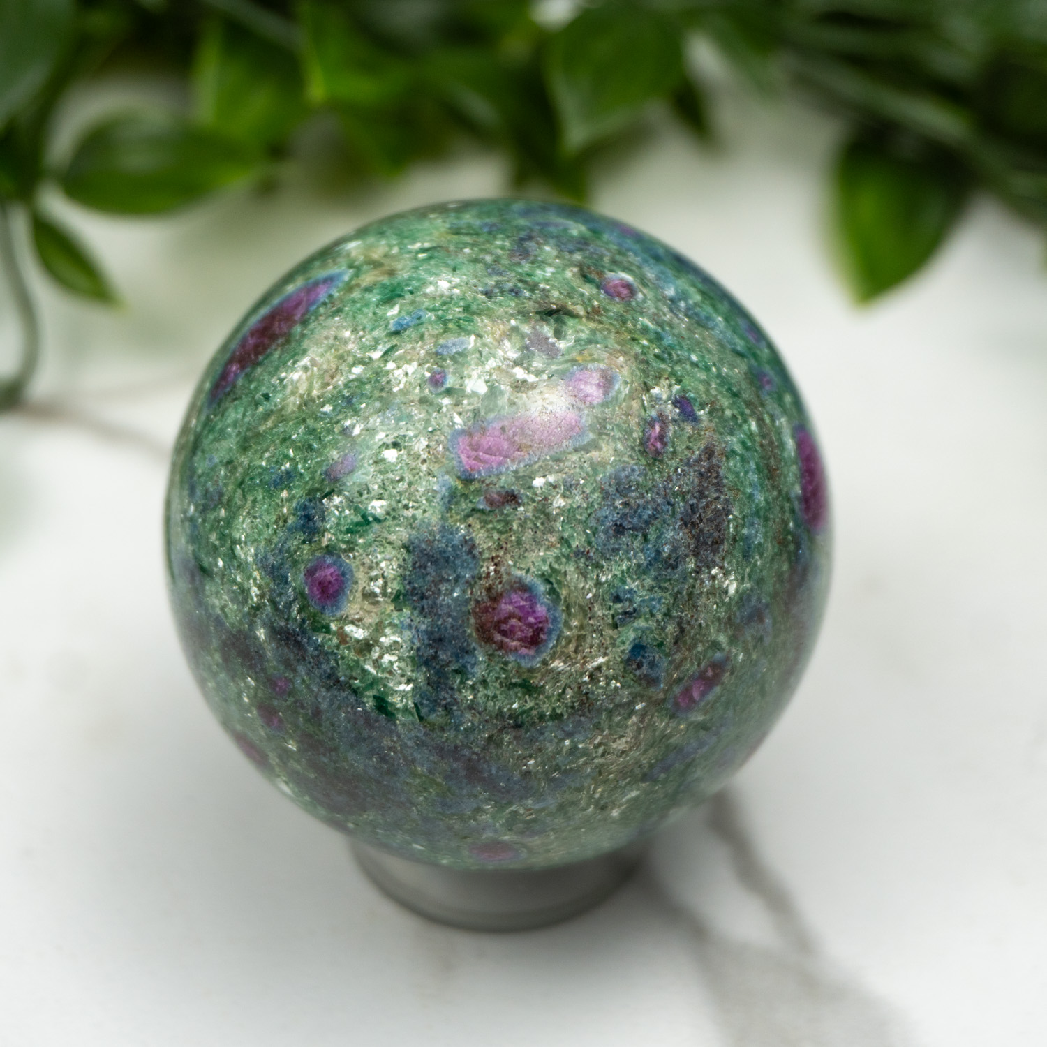 The energies of Ruby Fuchsite combined offer strong emotional support and self reflection during difficult times. The Ruby, which offers endless courage and strength, combined with the relaxing and nourishing vibrations of the Fuchsite, will be felt immediately. This crystal will start working to heal your emotional body and relieve all the weight that we carry on our hearts due to trauma. The Ruby itself will aid in providing strength and confidence in yourself, something that people struggle with daily. Offering newfound confidence will drive us to regain passion in our lives, and push us to begin moving forward on our life path. Fuchsite is a stone that facilitates energy transfer from other minerals , allowing for strengthened effects no matter what stone it’s combined with.
