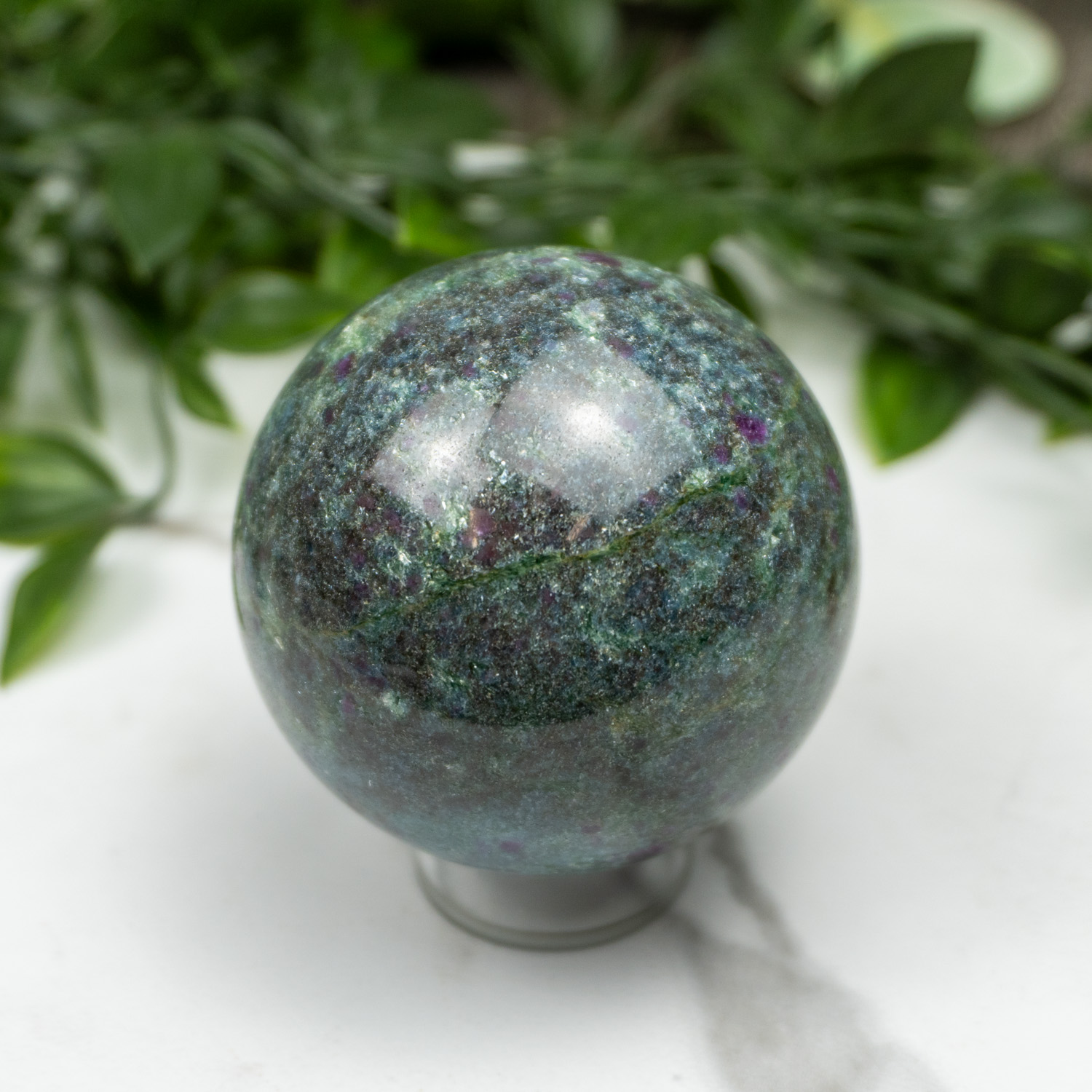 The energies of Ruby Fuchsite combined offer strong emotional support and self reflection during difficult times. The Ruby, which offers endless courage and strength, combined with the relaxing and nourishing vibrations of the Fuchsite, will be felt immediately. This crystal will start working to heal your emotional body and relieve all the weight that we carry on our hearts due to trauma. The Ruby itself will aid in providing strength and confidence in yourself, something that people struggle with daily. Offering newfound confidence will drive us to regain passion in our lives, and push us to begin moving forward on our life path. Fuchsite is a stone that facilitates energy transfer from other minerals , allowing for strengthened effects no matter what stone it’s combined with.