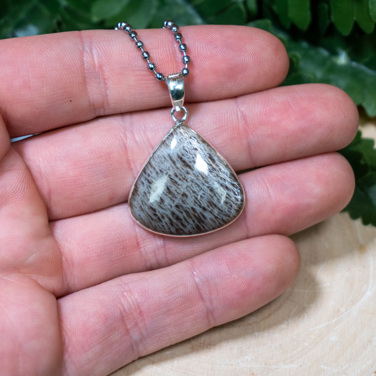 Sealstone is a unique version of Moonstone from Greenland! This necklace has a beautiful shimmer and shine that can be seen from all angles.