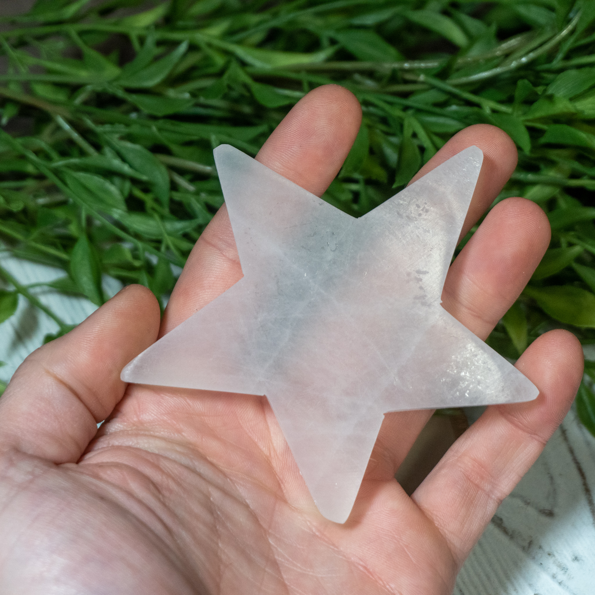 A star shaped Selenite plate perfect for charging and cleansing your stones each day! We also recommend placing this piece in a meditation grid to help channel pure light energy into your stones.