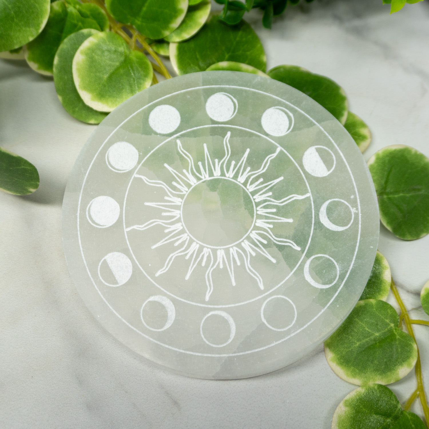 Selenite Sun and Moon Phase Plate Large