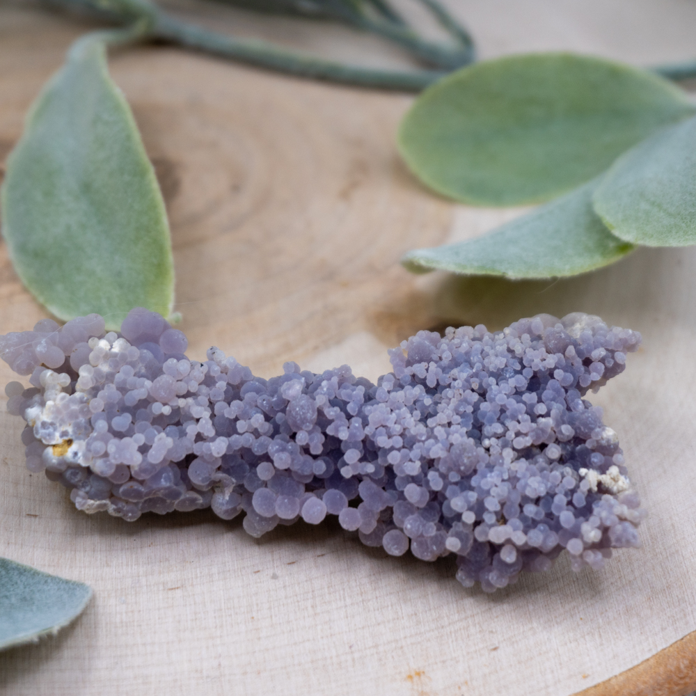 Grape Agate is a powerful intuitive stone that activates and links the crown and third eye chakras together. This stone helps one activate their psychic abilities and assists in the understanding of dreams.
