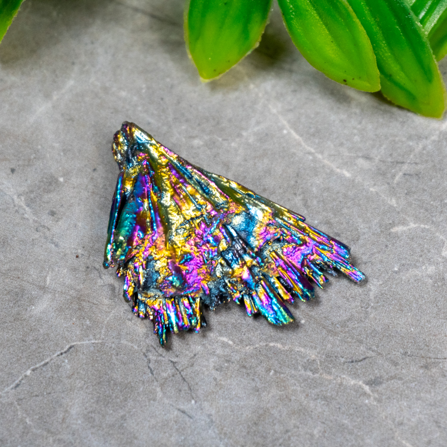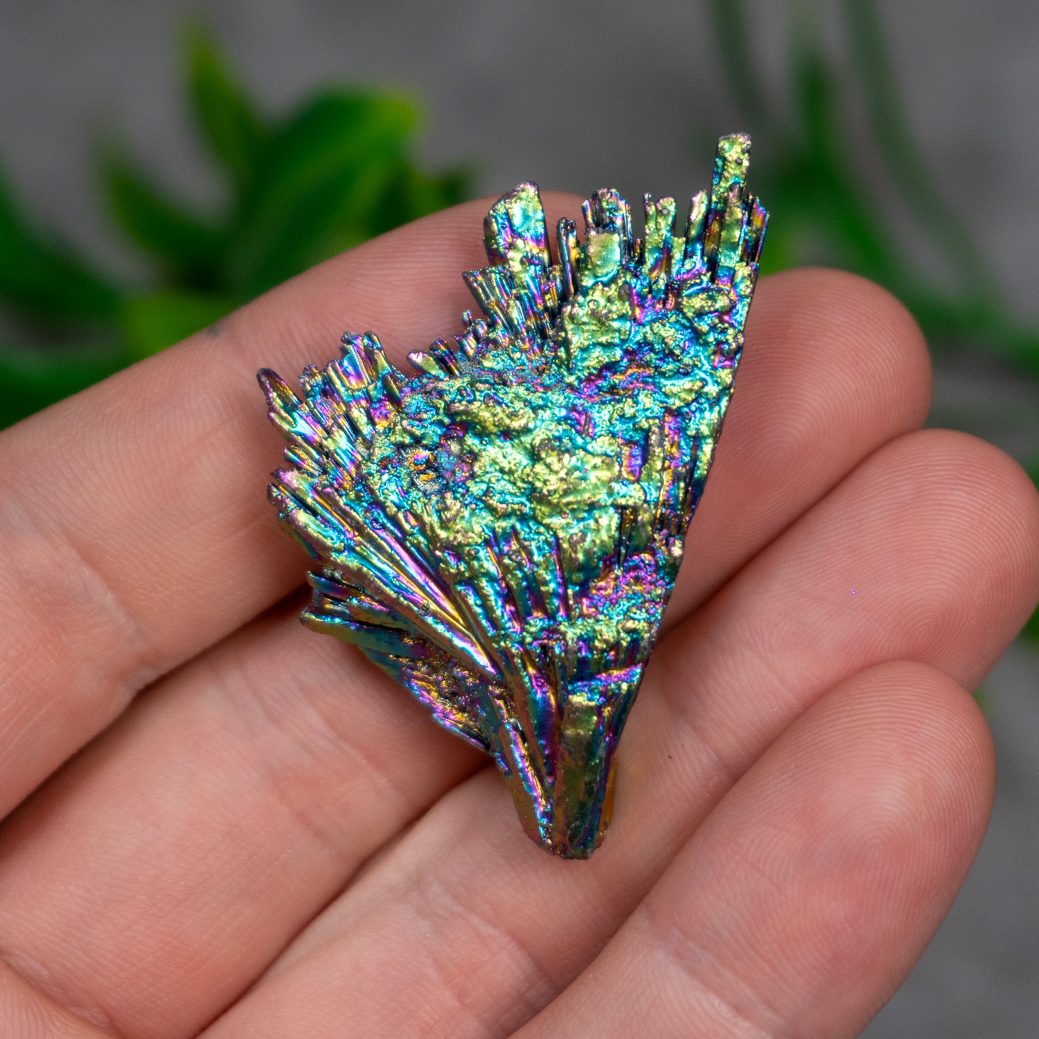 This is a natural mineral of Black Kyanite coated in additional elements and heated up to create a beautiful mirage of colors! Black Kyanite offers up grounding and protective energies that resonate with our root chakra. This stone also help align and balance all of your chakra, try scanning your entire energy system with this stone if you ever feel out of touch with yourself!