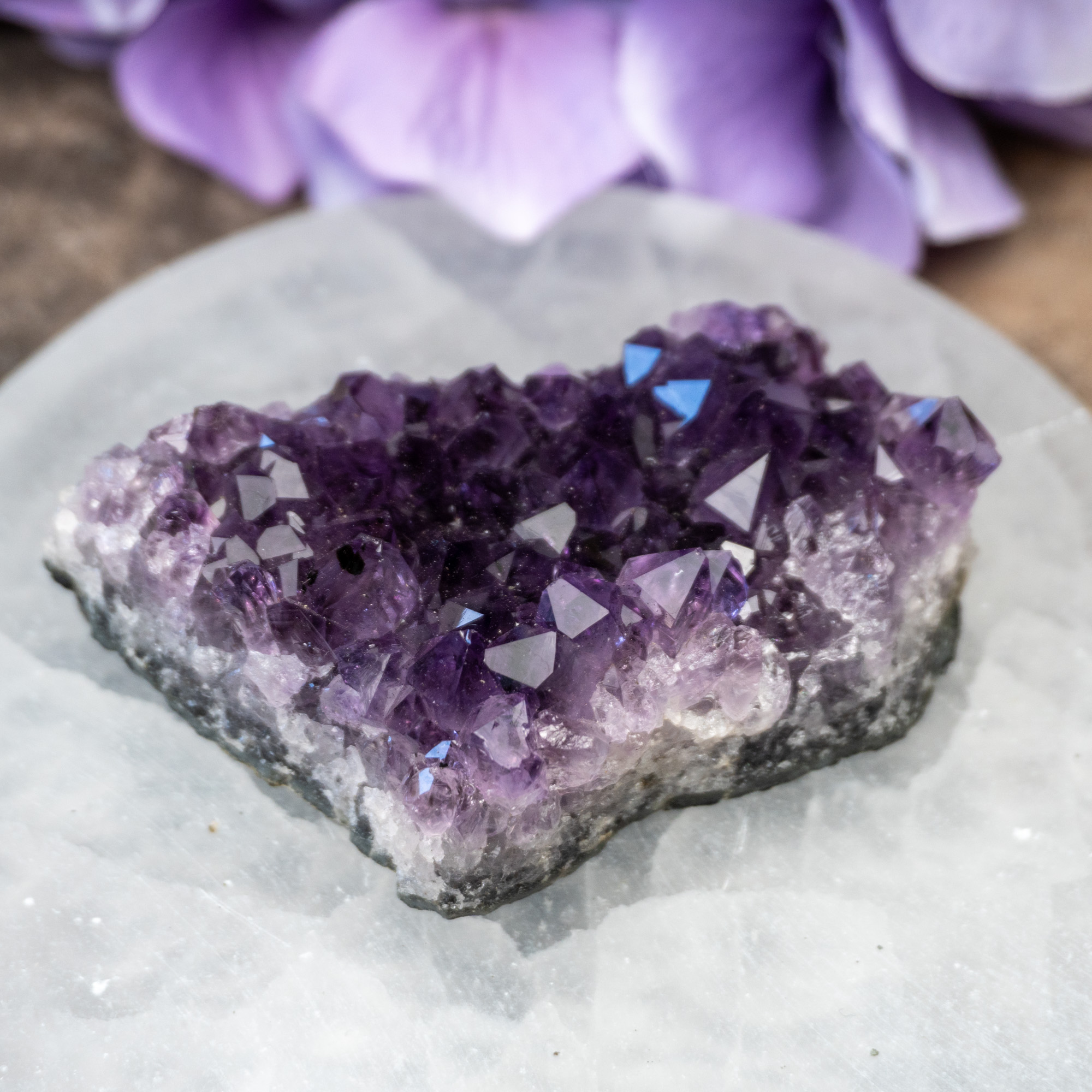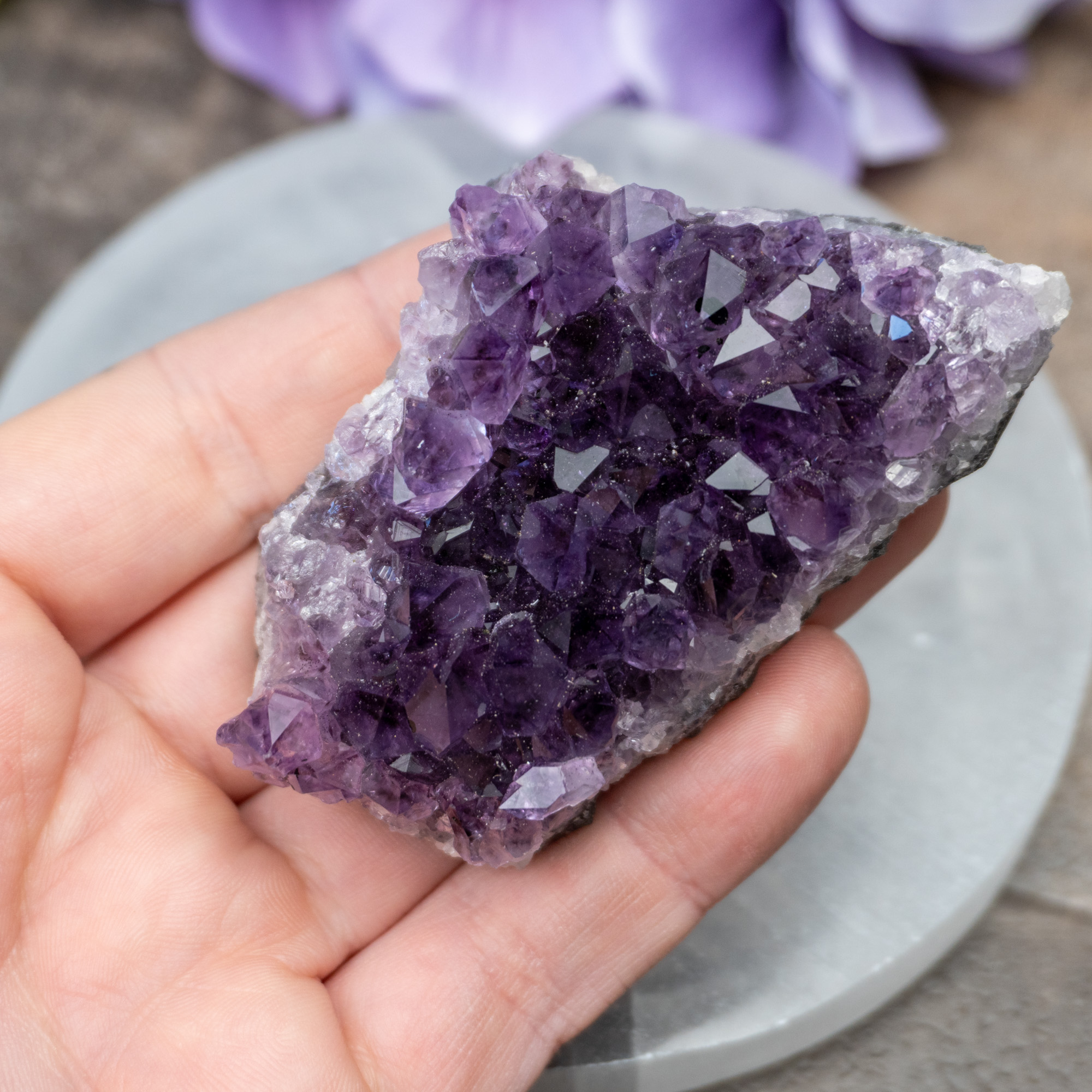 Uruguayan Amethyst is a multidimensional stone that offers a range of energetic uses. Its protective bubble helps one maintain mental clarity and physical energy. We recommend starting your meditations with gratitude while offering yourself up to the purple rays from this remarkable stone. Begin channeling your own energy with that of Amethyst’s and remind your auric field to accept the love around you. As you work with this stone, one will feel a sense of warmth and gratitude surrounding them. This is due to them knowing that they are finally in a safe place where they can feel once again.